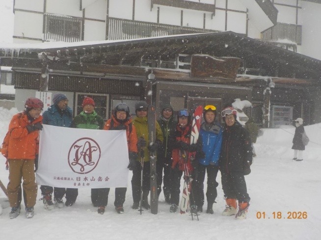 恒例の酸ヶ湯温泉利用の一月八甲田山は昨年同等に雪が多く、青森市内でも道路脇には雪の山が続き山中の粉雪を期待し胸が膨らむ。会員外では上野氏のほか弘前大学山岳部から2名の若者山越温貴氏(21歳)とその友人武隈楓子氏(19歳)が参加するなどクラブ山行には貴重な若さが交じり楽しいクラブ山行となった。