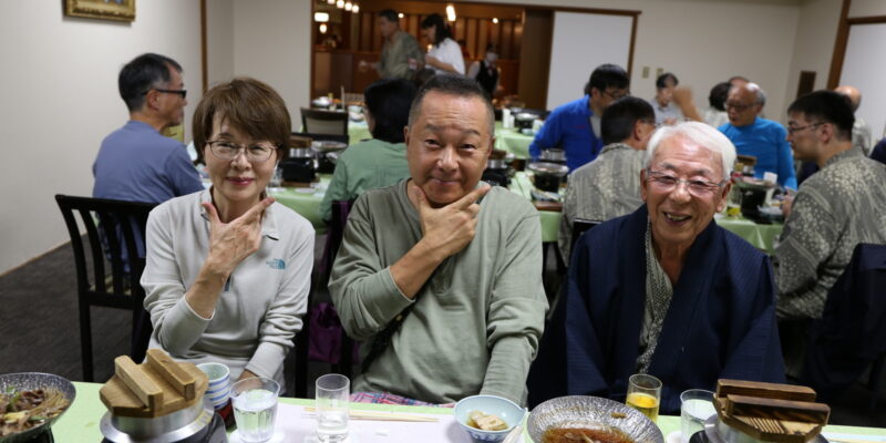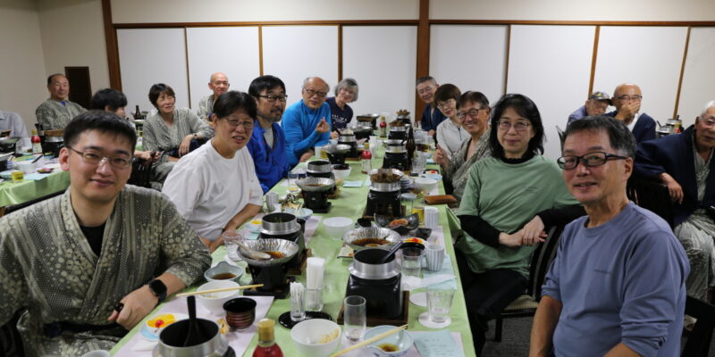 買出しや荷物の搬送・迎車まで引き受けていただいた笹生さん、素晴らしい宿泊先をご紹介いただいた小山さん、高野さんはじめ会計を担当いただいた皆様、写真担当の半田さん、救急対応いただいた野口さん、お酒をはじめ漬物・ケーキ・カヌレ他をお持ちいただいた皆様、わざわざ遠くからお越しいただいた高尾さん、須々田さん、新本さん、三宅さんその他参加の皆々様のご協力で何とか無事に終わりましたこと感謝申し上げます。また、留守番担当を引き受けていただいた村松さん、味岡さん、その他の会員の皆様のお力をお貸しいただき誠にありがとうございました。
