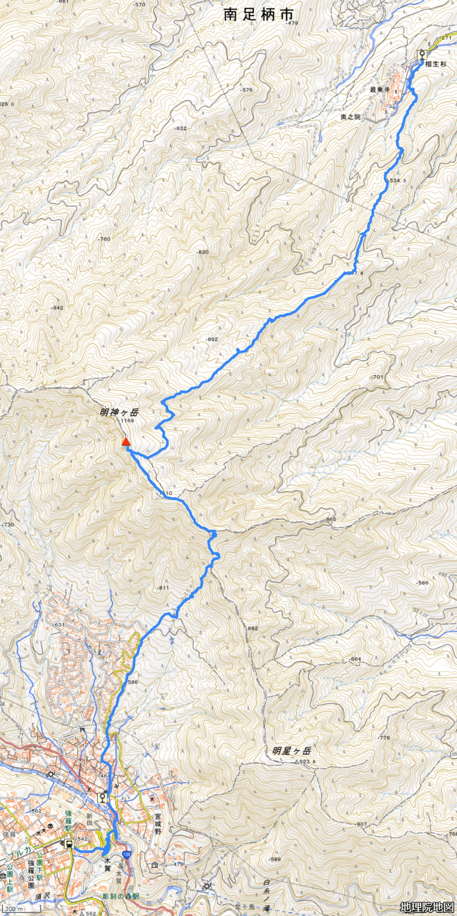 0930 道了尊~1050見晴小屋~1107神明水~1230明神ヶ岳1255 ~1330明星ヶ岳分岐~1430宮城野バス停===1435強羅駅