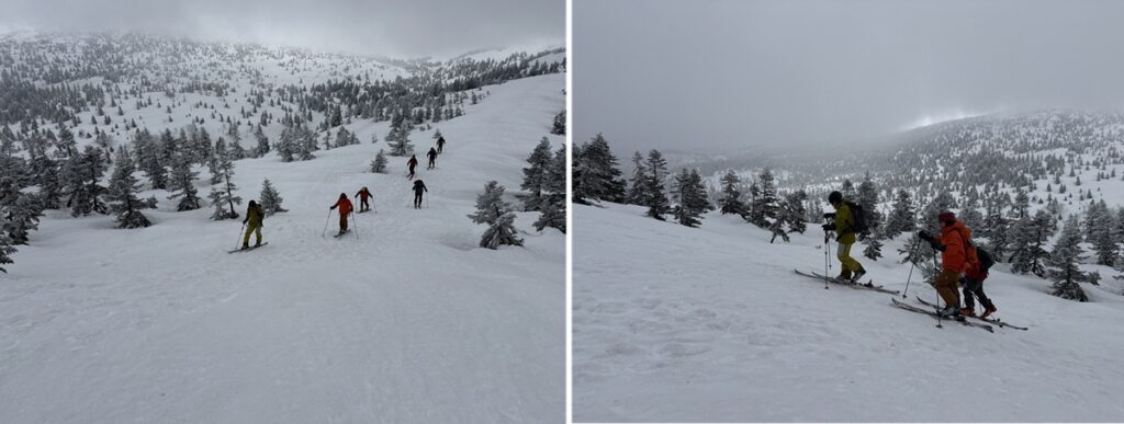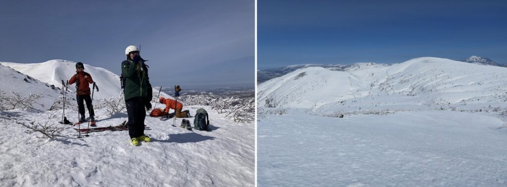 旧ゲレンデトップ少し前で靴を忘れたSさんが登ってきて合流。どちらのSさんか?