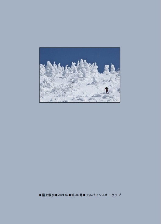 | 表紙: 2024年2月7日 チセヌプリの北面を登る(iPhone10で撮影) /中山茂樹 北海道支部主催の五色温泉合宿にASCメンバーと共に参加したときの一コマ。 シャクナゲ岳の山頂まで登ったあと長沼へ滑り込み、チセヌプリの北面を登り返しているところ。 |